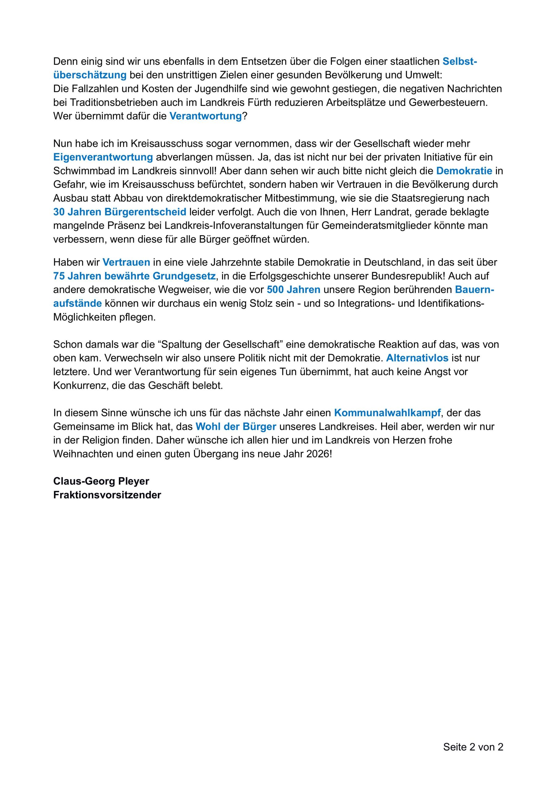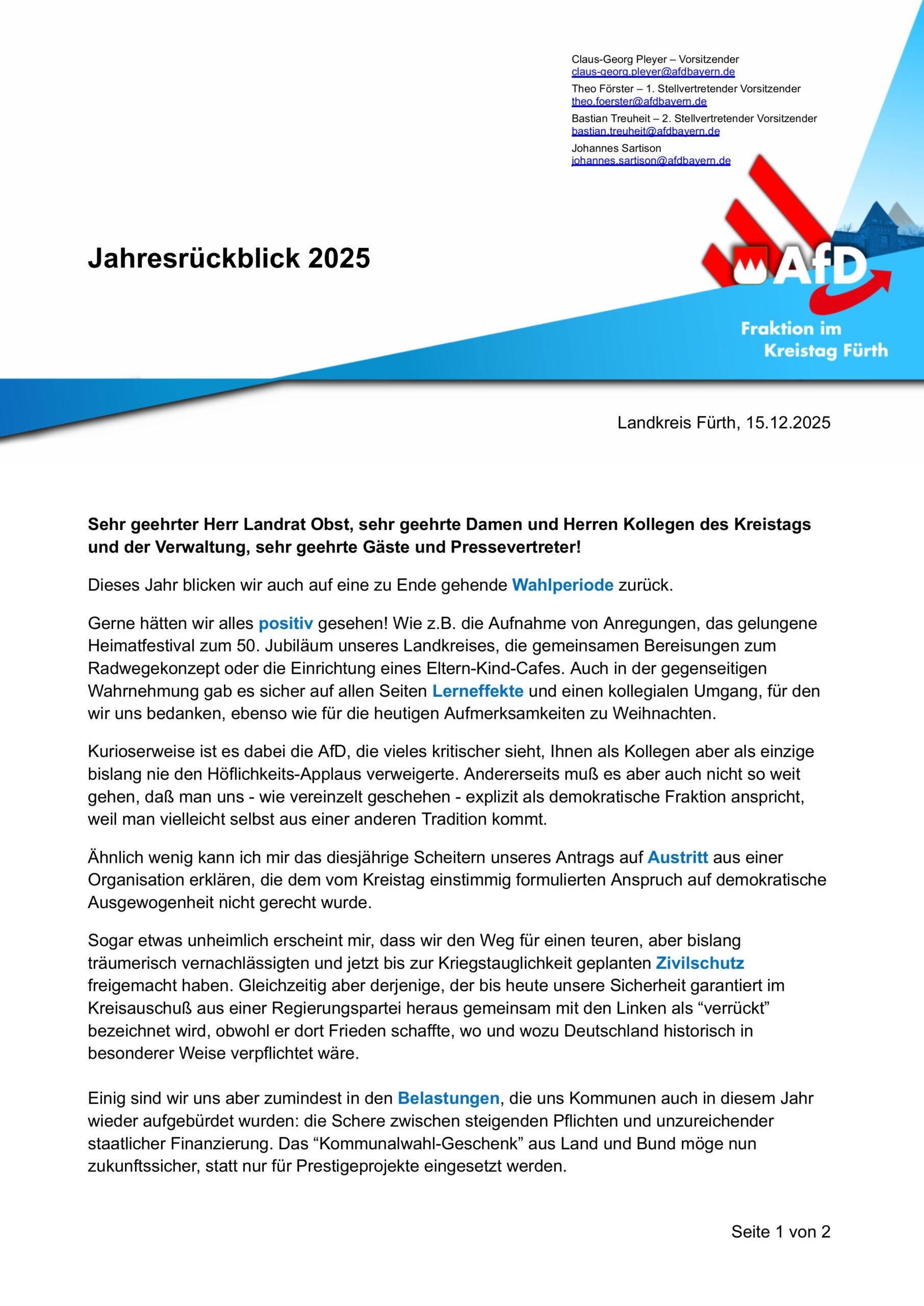 Mein Jahresrückblick 2025 als Kreistagsfraktionsvorsitzender Laden Sie hier das PDF des Jahresrückblicks der AfD-Kreistagsfraktion 2025 im Landkreis Fürth herunter. Laden Sie hier die Niederschrift der Kreistagssitzung vom 15.12.25 im Bürgerinformationssystem herunter. Freitag, 6 März, 2026| Ähnliche Beiträge